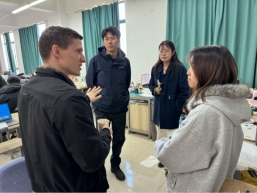 12月2日,评图焦点转向三年级建筑学专业。针对高年级学生的进阶需求,Reinders博士将指导重点放在设计深度打磨、可持续理念落地与汇报能力提升上。他延续去年“多维度考量设计要素”的核心观点,从流线优化、采光通风设计、环保材料选用等方面展开精准点评——既肯定学生方案中对“循环流线”的创新探索,也针对“窄廊与整体流线冲突”等问题,提出“拓宽通道、柱廊替代墙体”的实操建议;同时呼应“仪式感入口设计”理念,指导学生通过绿化点缀、台阶递进等细节营造空间体验。此外,博士还结合国际交流需求,梳理学生英语汇报逻辑,助力学子提升跨文化表达能力,为应对复杂设计任务积累经验。