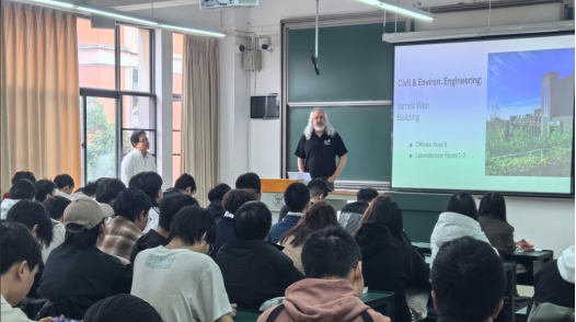 由Stephen博士和Charles博士共同开展的“走进思克莱德大学”2025级专题讲座,通过生动的图片与视频,带领同学们“云游”思克莱德大学 —— 从藏书丰富的图书馆,到配备先进设备的实验室,再到充满活力的学生社团活动中心。他还介绍了思克莱德大学土木工程专业的特色课程体系、科研团队,让同学们对未来赴英学习生活充满期待。